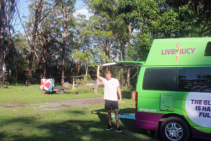 We picked up our JUCY campervan hire in the Gold Coast and took an easy 3-hour drive down the Northern NSW coast. Our first stop is Arrawarra, which is a small country town next to the beach and is known to have some pretty special waves, thus why we made it our first stop! We went for a surf early Saturday morning at Arrawarra point and completed the morning with a nice breakfast at the neighboring town, Woolgoolga. Whether you stay the night in this area or not, the new highway makes it a really easy place to stop by, and I highly recommend you add this to your road trip route. Woolgoolga point has a beautiful lookout that’s usually relatively uncrowded and a great place to pull up your JUCY campervan rental and make yourself a coffee out of the back. Plus, Woolgoolga also has some great cafes and pubs if you feel like a meal.