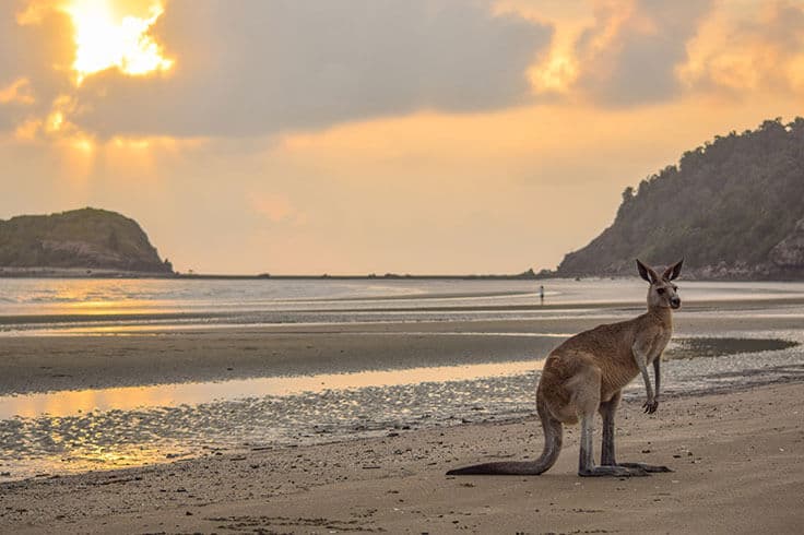 It’s the biggest drive on our 13-day itinerary, but you’ll find it so worthwhile when you’re watching the sunset with the ‘roos. Today’s mish is to the bucket-list–fulfilling Cape Hillsborough National Park